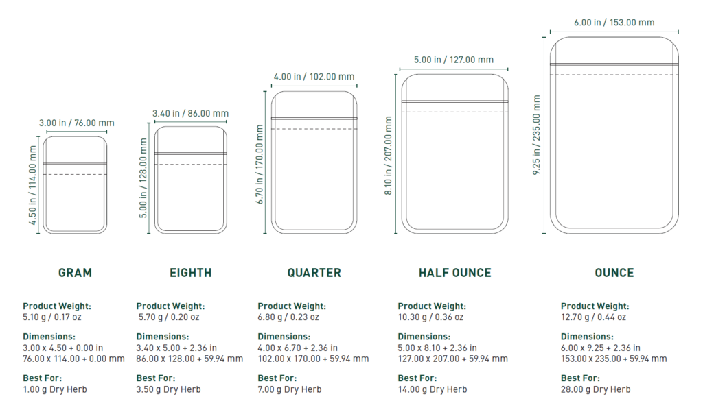 Equipped with rounded corners and a 4.5-millimeter thick construction, the bags are airtight, smell-proof, and water-resistant. Perfect for dry herb, edibles, and more, its concealed zipper seal provides additional security.